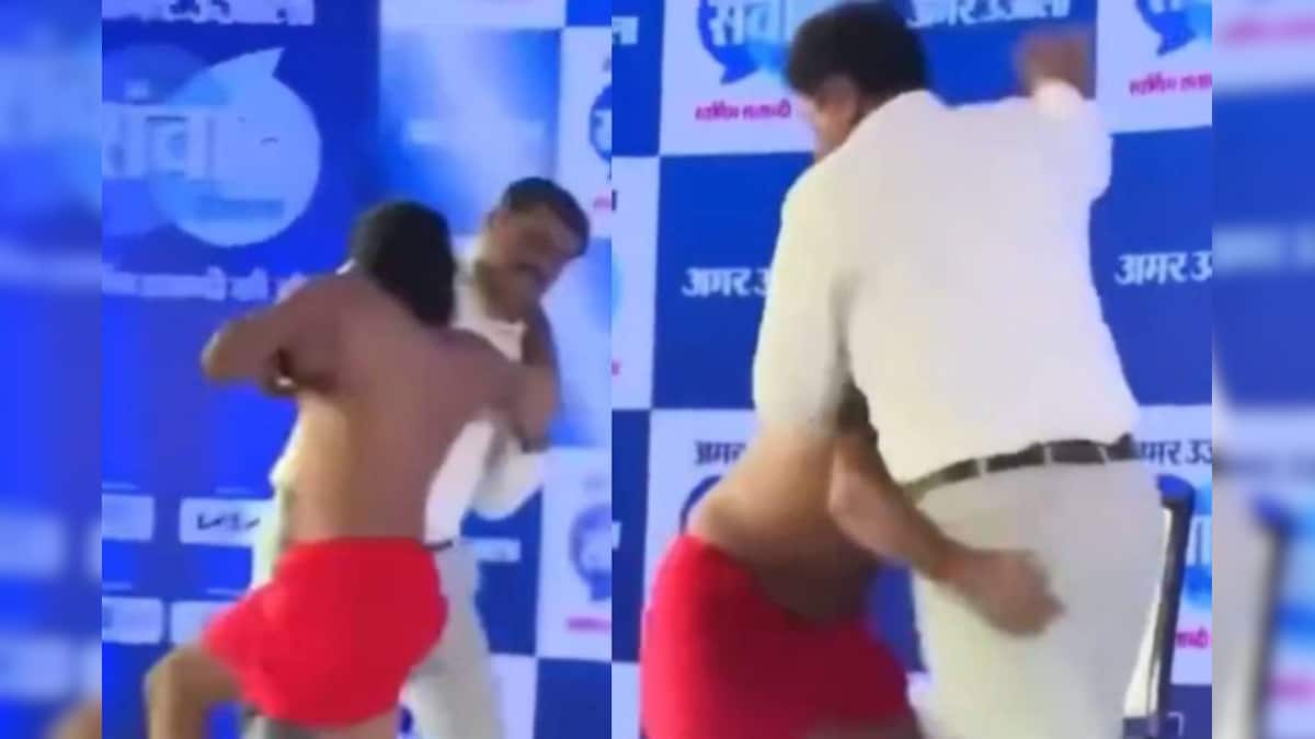 ആശാന് അടിതെറ്റി; ബാബാ രാംദേവും മാധ്യമപ്രവർത്തകനും തമ്മിൽ വേദിയിൽ നടന്ന ഗുസ്തി പിടിത്തം വൈറൽ| Yoga Guru vs Journalist Baba Ramdevs Unexpected Wrestling Bout on Stage | India