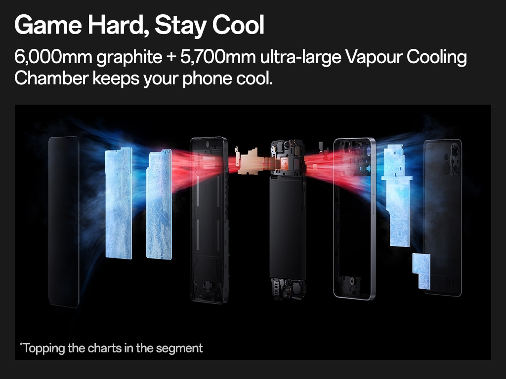 ഗെയിമിംഗ്, എഡിറ്റിംഗ്, അല്ലെങ്കിൽ ഹെവി ചാർജിംഗ് സെഷനുകൾ സാധാരണയായി  ഓവർ ഹീറ്റിങ്ങിനെയാണ് സൂചിപ്പിക്കുന്നത്. എന്നാൽ OPPO K13-ൽ അങ്ങനെയല്ല. 6000mm² ഗ്രാഫൈറ്റ് ഷീറ്റും 5700mm² വേപ്പർ ചേമ്പറും ഉൾക്കൊള്ളുന്ന അതിന്റെ കട്ടിംഗ്-എഡ്ജ് ഡ്യുവൽ-ലെയർ VC കൂളിംഗ് സിസ്റ്റം, സമ്മർദ്ദത്തിലാണെങ്കിലും നിങ്ങളുടെ ഫോൺ  കൂളായിരിക്കുമെന്ന് ഉറപ്പാക്കുന്നു. AI ഹൈപ്പർബൂസ്റ്റ്, അഡാപ്റ്റീവ് ഫ്രെയിം സ്റ്റെബിലൈസേഷൻ, AI ടെമ്പറേച്ചർ കൺട്രോൾ എന്നിവയുടെ പിന്തുണയോടെ, തീവ്രവും നീണ്ടതുമായ സെഷനുകളിൽ നിങ്ങളുടെ ഗെയിംപ്ലേ സുഗമമായും നിങ്ങളുടെ കൈകൾ വിയർക്കാതെ സുഖകരമായും തുടരാൻ സഹായിക്കുന്നു.